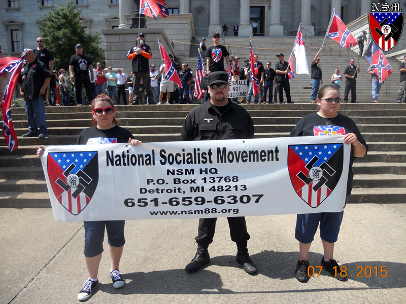 Le NSM ne soutient absolument pas les actions de Dylann Roof. Il a tiré sur des personnes désarmées dans une église et ce n’est pas du tout la philosophie du guerrier aryen. Actuellement, le gouvernement américain sous l’emprise du ZOG cherche à interdire le drapeau sudiste qui est une grosse partie de l’héritage blanc américain. Je reviens d’une manifestation en Caroline du Sud pour défendre ce drapeau sacré. On a fait un resumé de notre action avec des vidéos, photos, et discours sur notre site internet pour ceux que cela intéresse. Une guerre raciale est quelque chose que nous pensons tout à fait probable, et cela n’importe quand, bien sûr nous ne nous réjouissons pas de ça, mais si cela arrive nous serons prêts, et la race blanche survivra.