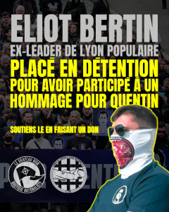 Jeudi 26 mars, le militant nationaliste révolutionnaire Eliot Bertin, ancien responsable de Lyon Populaire, a été placé en détention provisoire.
