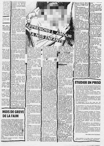 On ne parle pas ici de quelques marginaux issus de la société civile, mais bien de personnalités du monde politique ou intellectuel français qui tentent de faire accepter l’inacceptable. Complaisance assumée des médias Le 26 janvier 1977, une tribune signée par environ soixante-dix philosophes, écrivains, universitaires et autres figures médiatiques de premier plan sera d’abord publiée dans le journal Le Monde puis dans Libération. Les signataires y défendent trois hommes condamnés pour abus sexuels sur des mineurs de moins de 15 ans.
