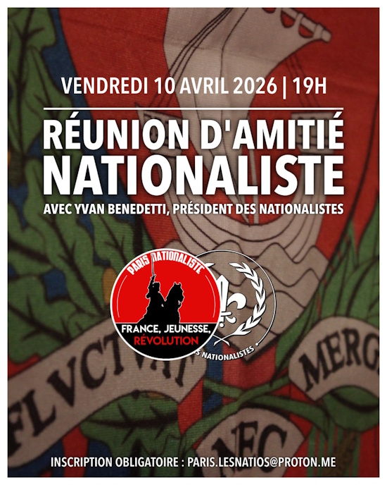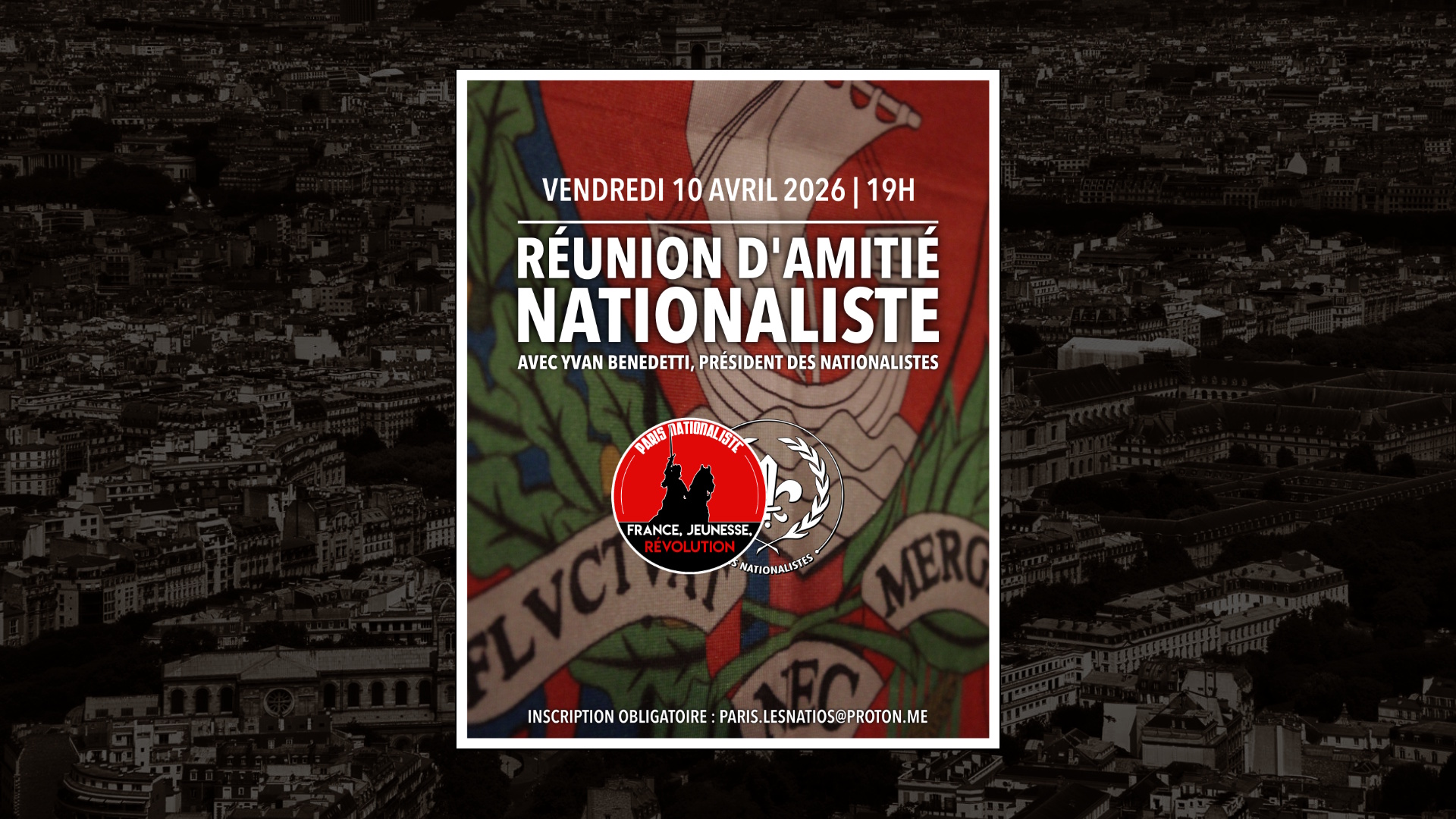 Jeune Nation TVLe vendredi 10 avril 2026, à partir de 19 heures, à Paris, venez rencontrer Yvan Benedetti (président des Nationalistes) pour une :