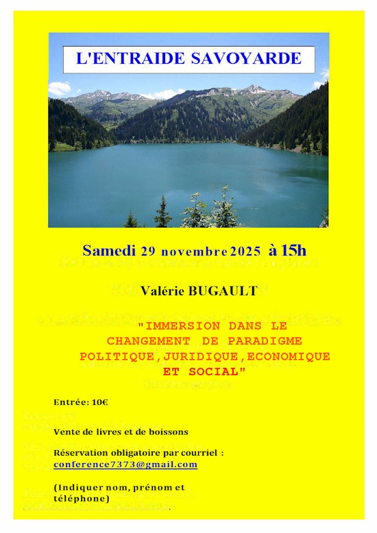L’Entraide Savoyarde recevra Valérie BUGAULT, le 25 NOVEMBRE 2025 à 15 HEURES, pour une conférence suivie d’un moment de questions/réponses sur le thème :