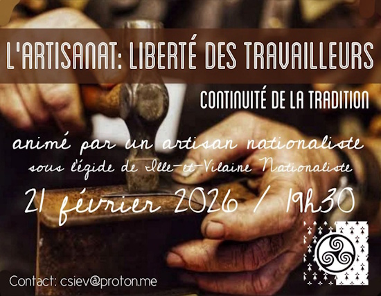 En ce mois de février, Ille-et-Vilaine Nationaliste continue son cycle de conférences. Avec cette fois-ci, une thématique portant sur le travail le samedi 21 février 2026, à 19 heures 30 :