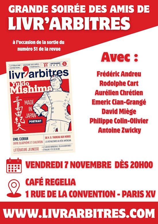 Le talentueux et percutant dessinateur de presse et d’actualité David Miège sera en dédicace le vendredi 7 novembre 2025 dès 20 heures, lors de la soirée Livr’Arbitres (Café Régalia, 1 Rue de la Convention, Paris XVe).