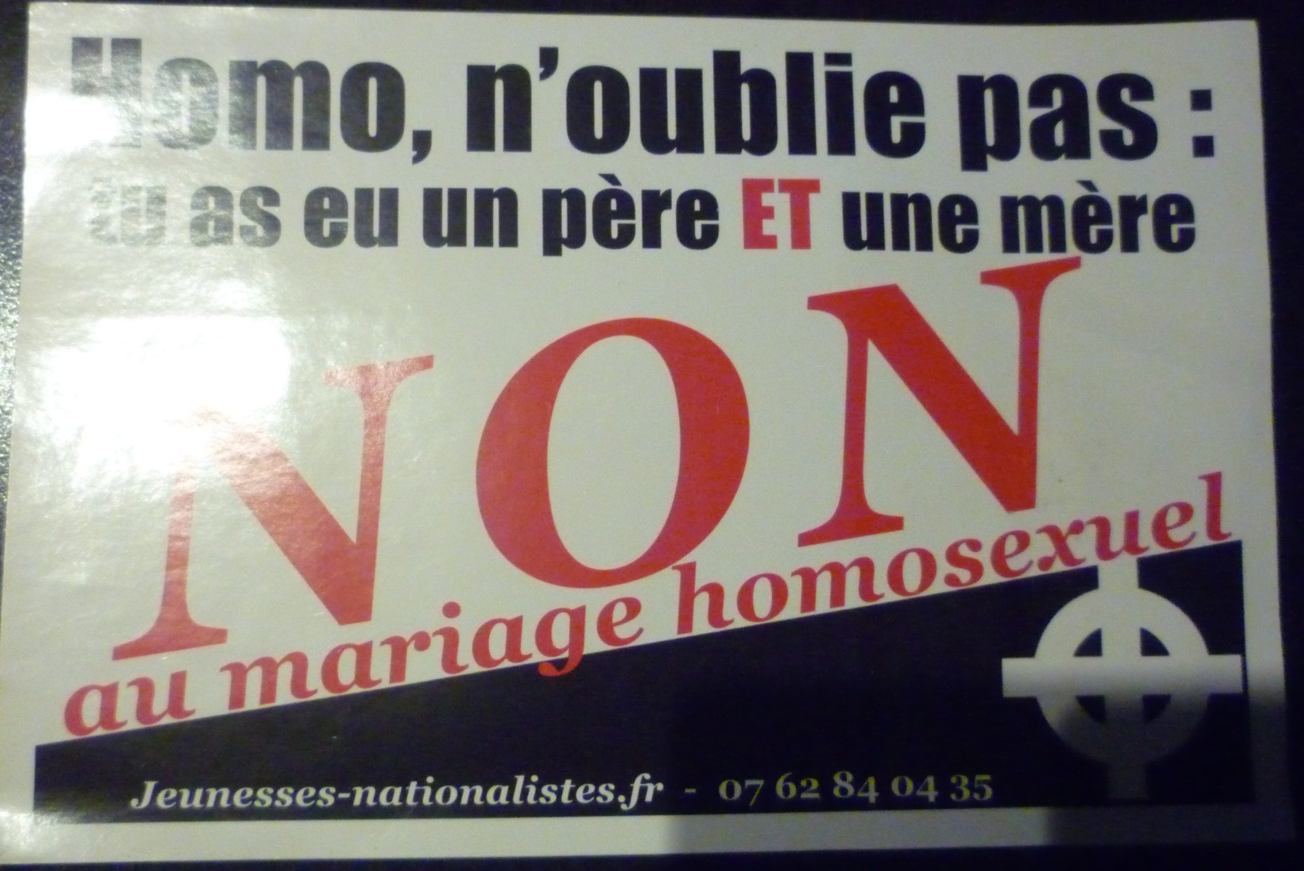 Autocollant des Jeunesses nationalistes « NON AU MARIAGE HOMOSEXUEL »