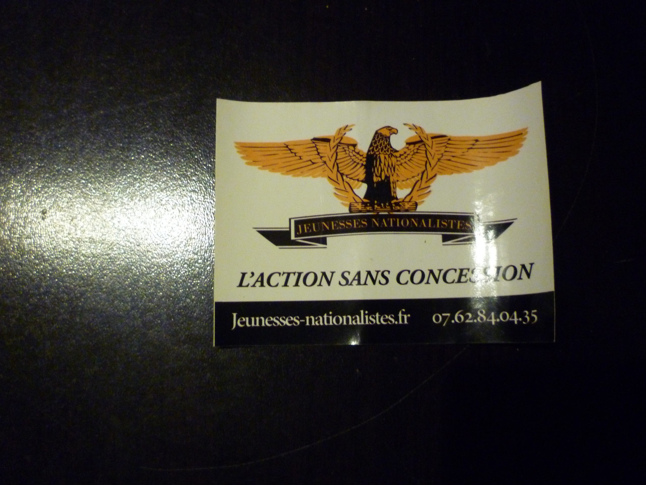 Autocollant des Jeunesses nationalistes « l’action sans concession ».