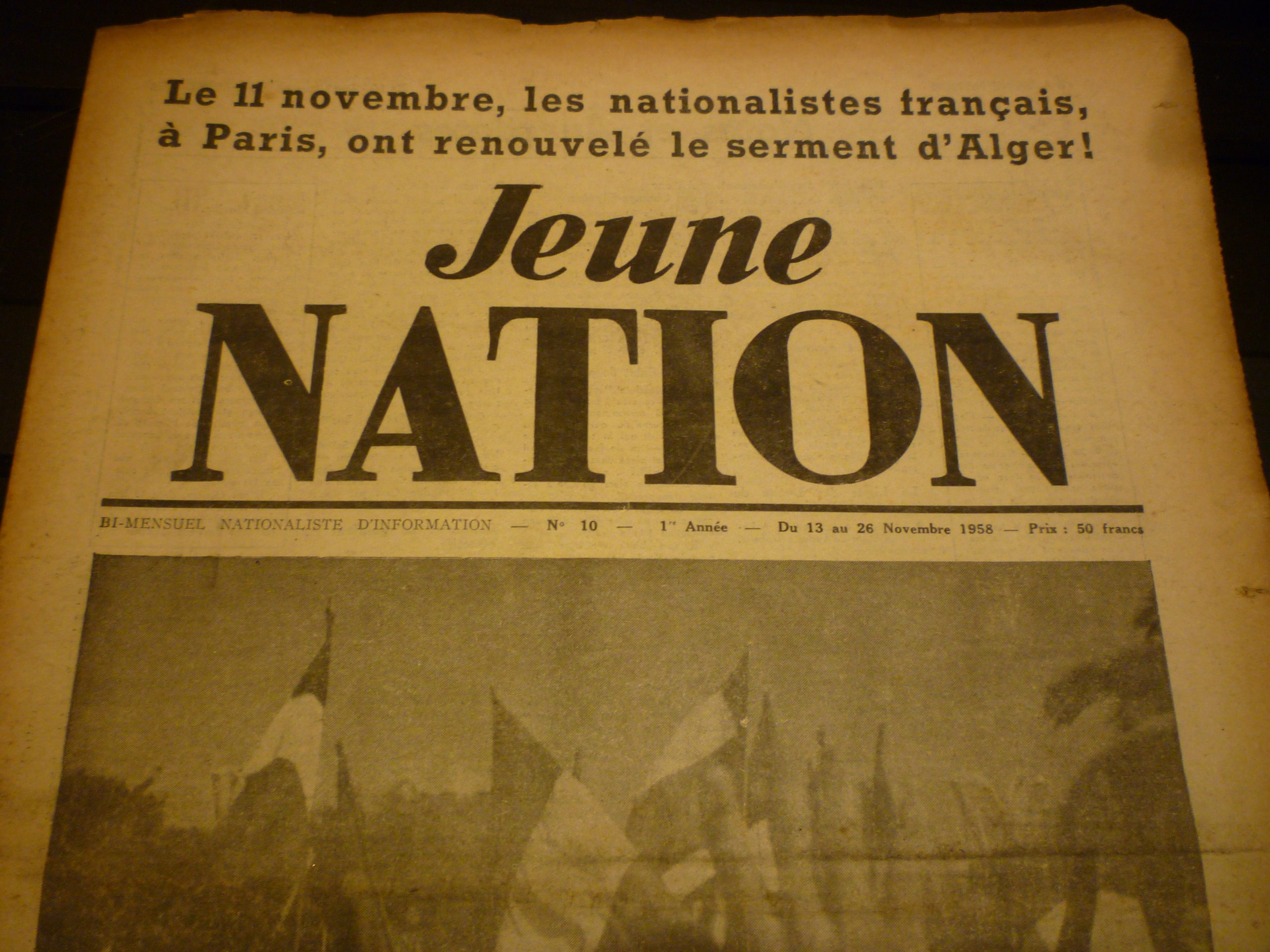 Journal Jeune Nation N°10 – 1ère année du 13 au 26 novembre 1958