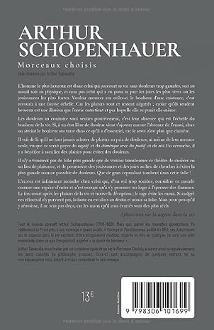 Qui ne connait pas Arthur Schopenhauer (1788-1860) ? Mais qui, parmi les nouvelles générations, l’a réellement lu ? Intégrés à son ouvrage « grand public » Parerga et Paralipomena publié en 1851, ses Aphorismes sur la sagesse dans la vie méritent d’être longuement médités. Digérés et mis en pratique, ils sont une aide essentielle dans ce que l’on pourrait appeler « la quête du bonheur ».