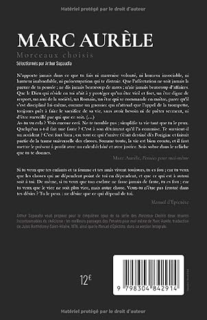 Arthur Sapaudia vous propose pour le cinquième opus de sa série des Morceaux Choisis deux œuvres incontournables du stoïcisme : les meilleurs passages des Pensées pour moi-même de Marc Aurèle, traduction de Jules Barthélemy-Saint-Hilaire, 1876, ainsi que le Manuel d’Épictète dans sa version intégrale.