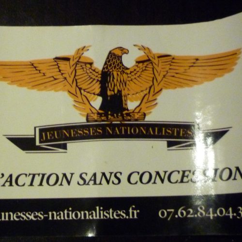 Autocollant des Jeunesses nationalistes « l’action sans concession ».