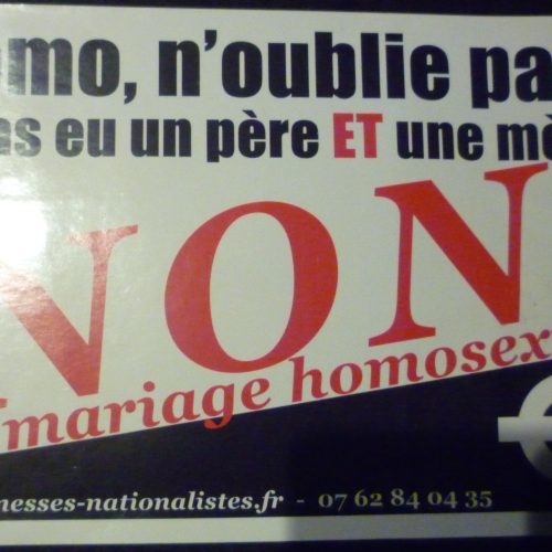Autocollant des Jeunesses nationalistes « NON AU MARIAGE HOMOSEXUEL »
