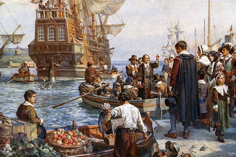 Les premiers immigrants blancs débarquèrent. On les appelait les »Pères pèlerins ». Des évadés d’Europe, des pays anglo-saxons pour la plupart, souvent des presbytériens rigoristes (forme de protestantisme calviniste) à la recherche d’une terre vierge à conquérir. Ces puritains coloniaux, d’un genre particulier, cherchaient les faveurs divines dans le fait que Dieu remplirait leurs poches si il y trouvait un intérêt. Cette dérive de »foi » asséchant les âmes, était donc un terrain favorable à l’escroquerie ainsi qu’au renoncement de tous les plaisirs de la vie chrétienne. Les pères puritains n’apportèrent avec eux dans leurs bagages, en Amérique, que la Bible et le livre des prières. Le patrimoine culturel européens, ses chants, ses danses, ses textes, ses illustrations et autres sublimes choses traditionnelles qu’offrait l’Europe ne traversèrent pas ou peu l’Atlantique. Un patrimoine culturel amoindri ajouté à une doctrine religieuse créatrice de vide fut le terreau d’une sorte de barbarie religieuse renfrognée.