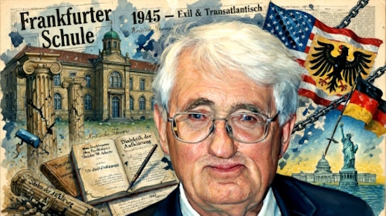 Après avoir soutenu sa thèse en 1954 auprès de l’ancien activiste nazi Erich Rothacker et avoir publié une précoce critique de Heidegger, il fut recruté par le centre de gravité de la future « École de Francfort », soit par Theodor W. Adorno, pour devenir assistant à l’Institut de recherche sociale de Francfort. Là, Habermas transforma la soi-disant « théorie critique » en une théorie fumeuse de la communication – contribuant ainsi de manière décisive à rendre le marxisme à nouveau fréquentable pour une nouvelle génération d’intellectuels et de gauchistes en Europe de l’Ouest.