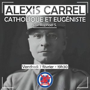 Un de vos militants a donné une conférence sur le médecin Alexis Carrel et sa contribution au courant eugéniste. Qui est Alexis Carrel ? Quelle fut la conclusion de cette conférence et quel est votre regard sur l’eugénisme ?