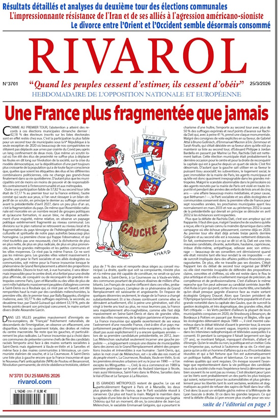 Outre une participation faible de 57,82 % au second tour (elle était de 57,17 % au premier tour sur la France entière), l’autre constat qui saute aux yeux, si l’on veut s’essayer à un bilan objectif de ce scrutin, en principe le dernier au suffrage universel avant la présidentielle d’avril 2027, dans un peu plus d’un an, c’est la fragmentation du pays. De même que l’Assemblée nationale est morcelée en un nombre record de groupes politiques et qu’aucune formation, ni aucun bloc, ne dispose actuellement d’une majorité, même relative, on observe un paysage politique extrêmement fragmenté au niveau communal. Les divisions sur le plan national se retrouvent au niveau local et la fragmentation du pays témoigne de l’hétérogénéité ethnique, culturelle et spirituelle de notre pays autrefois beaucoup plus homogène. La première chose qui frappe l’observateur, et qui n’est toutefois pas une nouveauté, c’est la dichotomie de plus en plus nette, de plus en plus radicale, de plus en plus prononcée, entre les grandes métropoles et les petites communes et les villes moyennes. Ce n’est pas la même France. Ce ne sont pas les mêmes gens. Les grandes villes votent massivement à gauche, soit pour le Parti socialiste et ses alliés écologistes ou communistes, soit même pour la France insoumise lorsque le phénomène de Grand Remplacement a atteint des proportions considérables. Disons-le tout net, à vue humaine, il sera désormais impossible pour le centre droit, et a fortiori pour une droite plus affirmée, de conquérir ou de reconquérir de grandes métropoles comme Paris, Lyon et Marseille ou des villes de plus de cent mille habitants massivement peuplées d’allogènes comme à Saint-Denis ou à Roubaix qui, ce n’est pas un hasard, ont été remportées haut la main par des candidats mélenchonistes, la première ville, dès le premier tour, par Bally Bagayoko, d’origine malienne, avec 50,77 % des suffrages exprimés, la seconde, au deuxième tour, par David Guiraud qui obtient 53,19 %, près de trente points devant son principal concurrent, le maire sortant divers droite Alexandre Garcin.