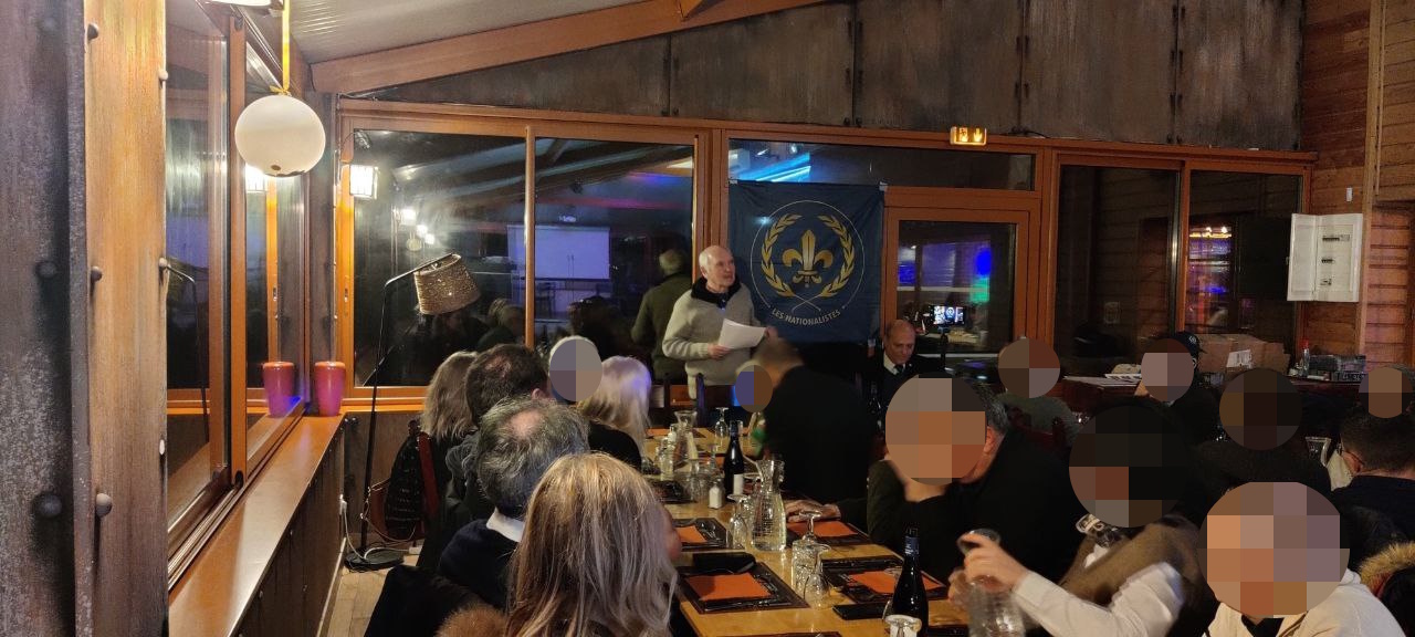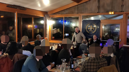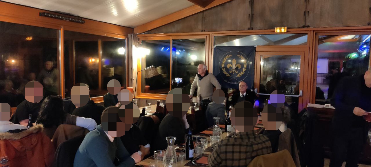 Autour du menu copieux et arrosé qui réchauffa les corps et les âmes, les convives ont pu ensuite échangé avec Pierre-Marie Bonneau porte-parole de Forteresse Europe et avec Yvan Benedetti chef des Nationalistes sur nos projets d’avenir politique et nos combats futurs pour la délivrance de la France enchaînée.